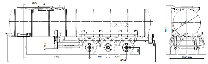 Битумовоз SF3B25_1S_17, ССУ 1350, 25 м3, 1 отсек - это весьма узкоспециализированная автоцистерна, которая предназначена для перевозки и временного хранения битума, мазута, сырой нефти, а также некоторых других веществ, разогретых до температуры 200 градусов. Конструкция цистерны выполнена из низколегированной стали. Общая длина 10000 мм. Высота 3600 мм. Ширина 2550 мм. Колесная база 5230+1360+1360 мм. Общая масса брутто 32500 кг.