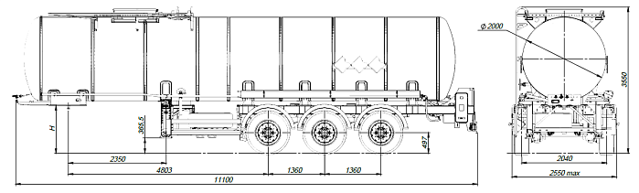 Битумовоз SF3B25_1S_19, ССУ 1150, 25 м3, 1 отсек - это весьма узкоспециализированная автоцистерна, которая предназначена для перевозки и временного хранения битума, мазута, сырой нефти, а также некоторых других веществ, разогретых до температуры 200 градусов. Конструкция цистерны выполнена из низколегированной стали. Общая длина 11000 мм. Высота 3550 мм. Ширина 2550 мм. Колесная база 4803+1360+1360 мм. Общая масса брутто 32000 кг.