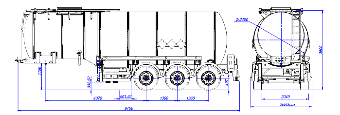 Конструкция цистерны SF3B28_1S_47, ССУ 1150, 1 отсек выполнена из низколегированной стали, либо из нержавеющей стали, самонесущей конструкции, предназначенная для перевозки и временного хранения темных нефтепродуктов (горячий битум, смолистые масла, мазут и пр.), транспортируется тягачом колесной формулой, 6х4 российского или иностранного производства. Общая масса брутто 32900 кг. Грузоподъемность 25400 кг. Корпус цистерны изготовлен из низколегированной стали и покрыт тепловой изоляцией (дополнительная опция) 150 мм, а также листом оцинкованной стали толщиной 0,8 мм либо из нержавеющей стали толщиной 0,8 мм. Модель: круглая форма, с заниженным центром тяжести. Высота ТС 3600 мм. Ширина 2550 мм. Нагрузка ССУ 10430 кг. Нагрузка на оси 22470 кг.