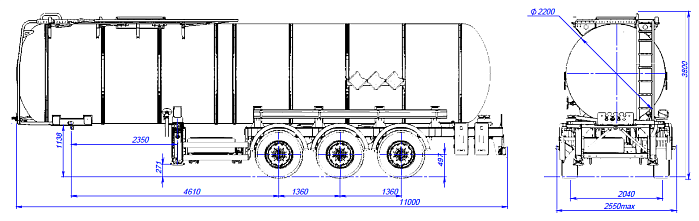 Конструкция цистерны SF3B28_1S_48, ССУ 1250, 1 отсек выполнена из низколегированной стали
