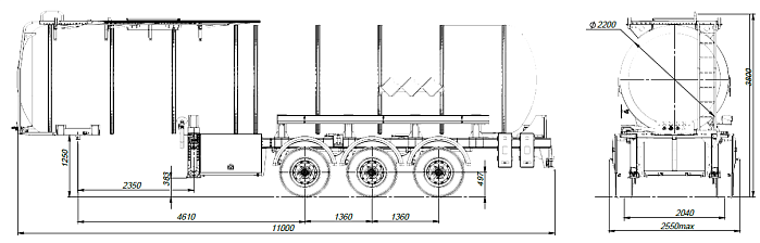Конструкция цистерны SF3B28_1S_52, ССУ 1250, 1 отсек выполнена из низколегированной стали