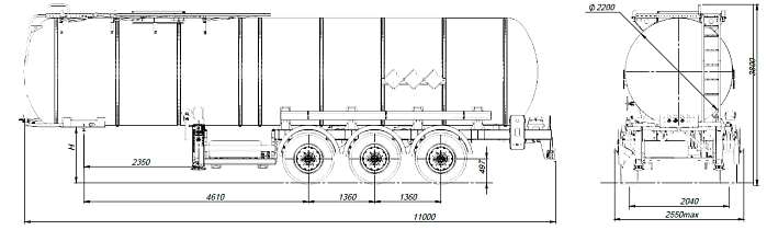 Конструкция цистерны SF3B28_1S_60, ССУ 1150, 1 отсек выполнена из низколегированной стали, либо из нержавеющей стали, самонесущей конструкции, предназначенная для перевозки и временного хранения темных нефтепродуктов (горячий битум, смолистые масла, мазут и пр.), транспортируется тягачом колесной формулой, 6х4 российского или иностранного производства. Общая масса брутто 31800 кг. Грузоподъемность 24300 кг. Корпус цистерны изготовлен из низколегированной стали и покрыт тепловой изоляцией (дополнительная опция) 150 мм, а также листом оцинкованной стали толщиной 0,8 мм либо из нержавеющей стали толщиной 0,8 мм. Модель: круглая форма, с заниженным центром тяжести. Высота ТС 3700 мм. Ширина 2550 мм. Нагрузка ССУ 9500 кг. Нагрузка на оси 22300 кг.
