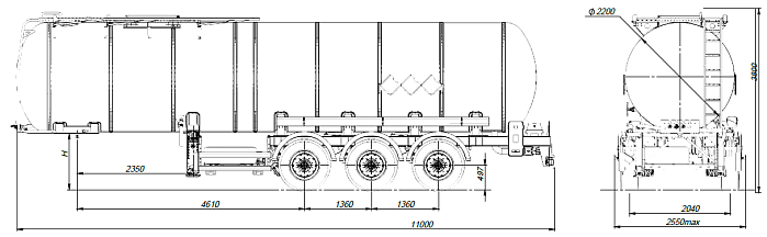 Конструкция цистерны SF3B28_1S_68, ССУ 1150, 1 отсек выполнена из низколегированной стали