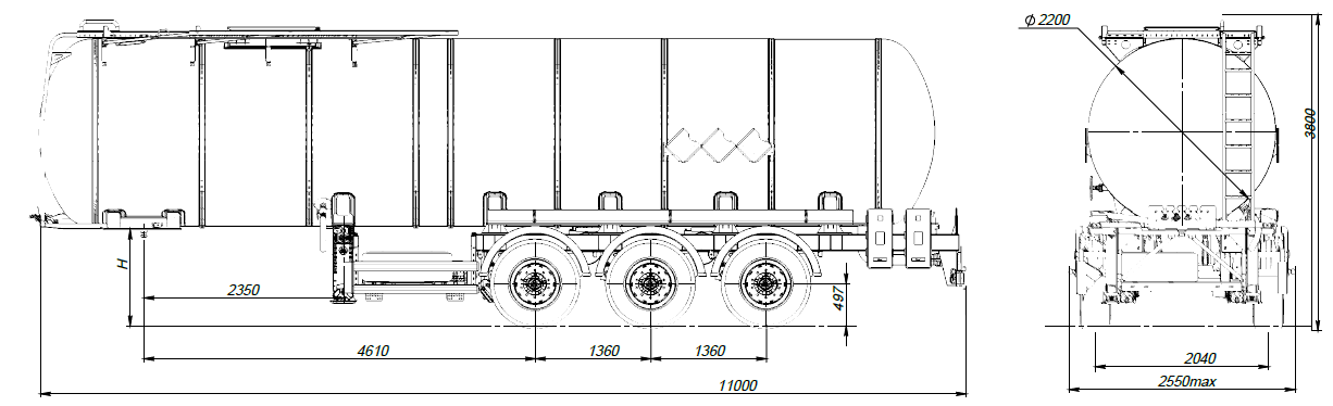Конструкция цистерны SF3B28_1S_81, ССУ 1150, 1 отсек выполнена из низколегированной стали, либо из нержавеющей стали, самонесущей конструкции, предназначенная для перевозки и временного хранения темных нефтепродуктов (горячий битум, смолистые масла, мазут и пр.), транспортируется тягачом колесной формулой, 6х4 российского или иностранного производства. Общая масса брутто 32000 кг. Грузоподъемность 24700 кг. Корпус цистерны изготовлен из низколегированной стали и покрыт тепловой изоляцией (дополнительная опция) 150 мм, а также листом оцинкованной стали толщиной 0,8 мм либо из нержавеющей стали толщиной 0,8 мм. Модель: круглая форма, с заниженным центром тяжести. Высота ТС 3800 мм. Ширина 2550 мм. Нагрузка ССУ 9620 кг. Нагрузка на оси 22480 кг.