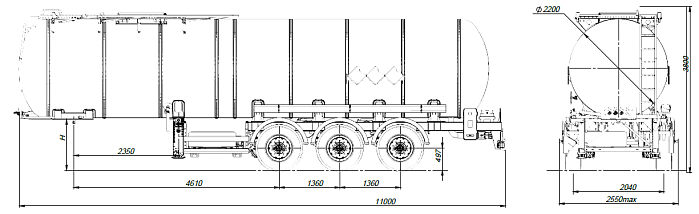 Конструкция цистерны SF3B28_1S_85, ССУ 1150, 1 отсек выполнена из низколегированной стали, либо из нержавеющей стали, самонесущей конструкции, предназначенная для перевозки и временного хранения темных нефтепродуктов (горячий битум, смолистые масла, мазут и пр.), транспортируется тягачом колесной формулой, 6х4 российского или иностранного производства. Общая масса брутто 32144 кг. Грузоподъемность 24868 кг. Корпус цистерны изготовлен из низколегированной стали и покрыт тепловой изоляцией (дополнительная опция) 150 мм, а также листом оцинкованной стали толщиной 0,8 мм либо из нержавеющей стали толщиной 0,8 мм. Модель: круглая форма, с заниженным центром тяжести. Высота ТС 3700 мм. Ширина 2550 мм. Нагрузка ССУ 9664 кг. Нагрузка на оси 22480 кг.