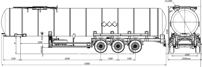 Нефтевоз SF3B35.1S_15 ССУ 1250 выполнен из низколегированной, либо из нержавеющей стали.