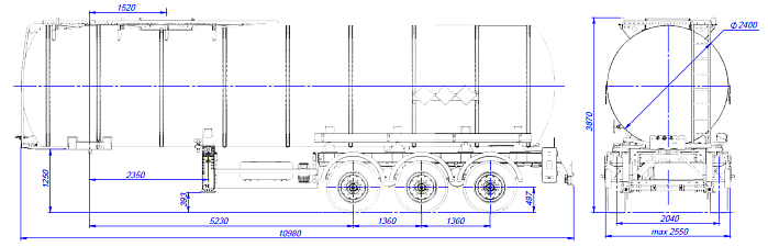 Цистерна подвергается специальной обработки с предварительной грунтовкой, обогащенной цинком и окрашиванием в один цвет высококачественной двухкомпонентной краской. Высота седельно-сцепного устройства от 1150 до 1250 мм. Дополнительно может быть установлено разнообразное оборудование, такое как насос, счетчик, узел выдачи топлива, система рекуперации паров, система нижнего налива и т.д.