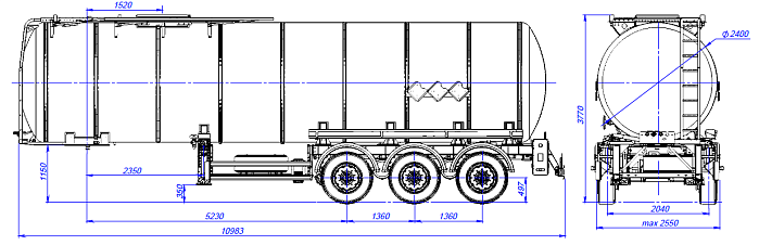 Цистерна подвергается специальной обработки с предварительной грунтовкой, обогащенной цинком и окрашиванием в один цвет высококачественной двухкомпонентной краской. Высота седельно-сцепного устройства от 1150 до 1250 мм. Дополнительно может быть установлено разнообразное оборудование, такое как насос, счетчик, узел выдачи топлива, система рекуперации паров, система нижнего налива и т.д.