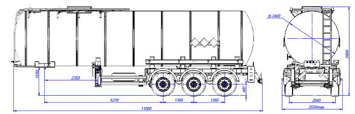 Цистерна подвергается специальной обработки с предварительной грунтовкой, обогащенной цинком и окрашиванием в один цвет высококачественной двухкомпонентной краской. Высота седельно-сцепного устройства от 1150 до 1250 мм. Дополнительно может быть установлено разнообразное оборудование, такое как насос, счетчик, узел выдачи топлива, система рекуперации паров, система нижнего налива и т.д.