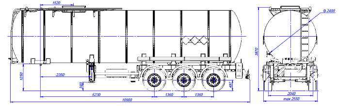 Цистерна подвергается специальной обработки с предварительной грунтовкой, обогащенной цинком и окрашиванием в один цвет высококачественной двухкомпонентной краской. Высота седельно-сцепного устройства от 1150 до 1250 мм. Дополнительно может быть установлено разнообразное оборудование, такое как насос, счетчик, узел выдачи топлива, система рекуперации паров, система нижнего налива и т.д.