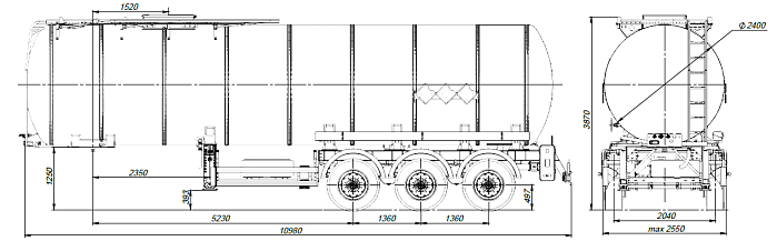 Цистерна подвергается специальной обработки с предварительной грунтовкой, обогащенной цинком и окрашиванием в один цвет высококачественной двухкомпонентной краской. Высота седельно-сцепного устройства от 1250 до 1350 мм. Дополнительно может быть установлено разнообразное оборудование, такое как насос, счетчик, узел выдачи топлива, система рекуперации паров, система нижнего налива и т.д.