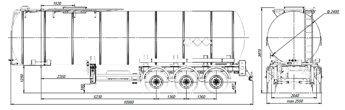 Цистерна подвергается специальной обработки с предварительной грунтовкой, обогащенной цинком и окрашиванием в один цвет высококачественной двухкомпонентной краской. Высота седельно-сцепного устройства от 1150 до 1250 мм. Дополнительно может быть установлено разнообразное оборудование, такое как насос, счетчик, узел выдачи топлива, система рекуперации паров, система нижнего налива и т.д.