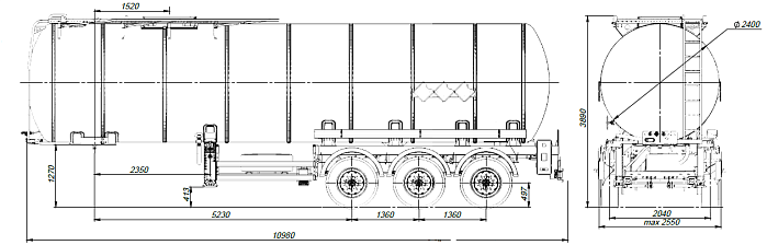 Цистерна подвергается специальной обработки с предварительной грунтовкой, обогащенной цинком и окрашиванием в один цвет высококачественной двухкомпонентной краской. Высота седельно-сцепного устройства от 1150 до 1250 мм. Дополнительно может быть установлено разнообразное оборудование, такое как насос, счетчик, узел выдачи топлива, система рекуперации паров, система нижнего налива и т.д.
