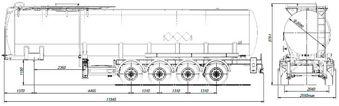 4-х осный битумовоз SF4B38.1S_01 - это весьма узкоспециализированная автоцистерна, которая предназначена для перевозки и временного хранения битума, мазута, сырой нефти, а также некоторых других веществ, разогретых до температуры 200 градусов. Конструкция цистерны выполнена из низколегированной стали. Объем цистерны составляет 38 м3. Четырехосный битумовоз SF4B38 разделяется на 1 отсек. Транспортируется тягачом колесной формулой 4х2 российского или иностранного производства. Общая масса брутто 36000 кг.
