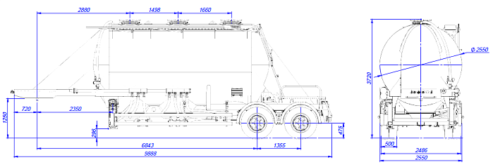 Цементовоз SF2U25.1S_01 - полуприцеп-цистерна, предназначенная для бестарной перевозки сухих сыпучих, не расфасованных грузов: цемент, кварцевый песок плывун, глина и т.д. Конструкция цистерны выполнена из низколегированной стали в виде несущей емкости. Объем цистерны составляет 25 м3. Грузоподъемность 27500 кг. Масса снаряжённого ТС 7050 кг.