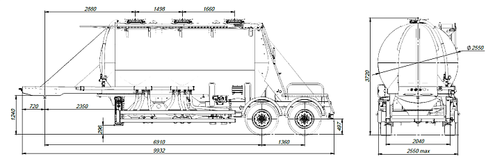 Цементовоз SF2U25.1S_05 - полуприцеп-цистерна, предназначенная для бестарной перевозки сухих сыпучих, не расфасованных грузов: цемент, кварцевый песок плывун, глина и т.д. Конструкция цистерны выполнена из низколегированной стали в виде несущей емкости. Объем цистерны составляет 25 м3. Грузоподъемность 20050 кг. Масса снаряжённого ТС 6400 кг.