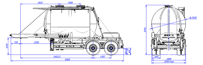 Транспортируется цементовоз тягачом колесной формулой 4x2 (6х4) российского или иностранного производства.