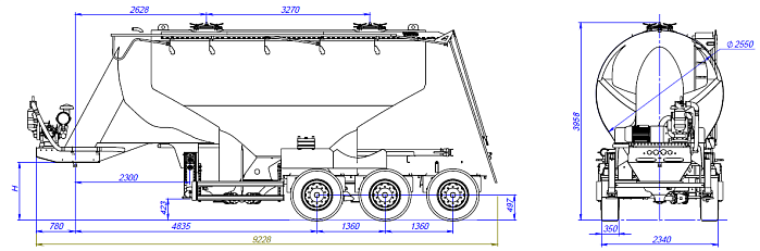 Цементовоз 964817_04 - основное назначение этого полуприцепа-цистерны перевозка цемента, а также других строительных смесей. Помимо строительной направленности, полуприцеп может использоваться для перевозки сыпучих пищевых продуктов (зерна, крупы, муки и т.п.). Конструкция цистерны выполнена из низколегированной стали. Объем цистерны составляет 30 м3. Транспортируется тягачом колесной формулой – 4х2 российского или иностранного производства. Грузоподъемность ТС 27200 кг. Общая масса брутто 32000 кг.
