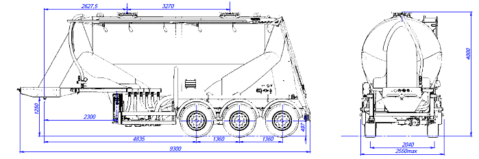 Количество изолированных отсеков – 1 (емкость может быть разделена внутренними перегородками на 4 (четыре) герметичных отсека для перевозки различных сортов груза с индивидуальной выгрузкой). Ходовая часть полуприцепа трехосная односкатная с пневмоподвеской производства «BPW» (Германия), гарантия предоставляется фирмой «BPW» до 3 лет. Двухпроводная тормозная система, оснащенная системой 2S/2M с функцией ABS. Полуприцеп оборудован индивидуальными крыльями из ПВХ.