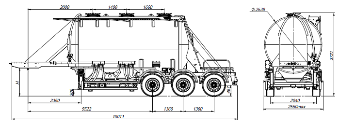 Цистерна подвергается специальной обработки с предварительной грунтовкой, обогащенной цинком и окрашиванием в один цвет высококачественной двухкомпонентной краской. Высота седельно-сцепного устройства 1250 мм. Дополнительно может быть установлено разнообразное оборудование, такое как насос, счетчик, узел выдачи топлива, система рекуперации паров, система нижнего налива и т.д. Грузоподъемность 16900 кг. Масса снаряжённого ТС 7500 кг. Общая масса брутто 24550 кг.