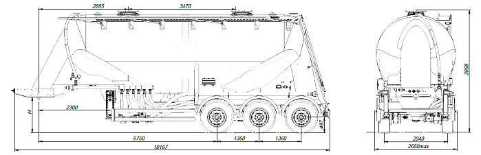 Цементовоз SF3U34.1S_01 объемом 34 м3 предназначен для перевозки цемента и других сыпучих строительных материалов. Помимо строительной направленности, полуприцеп-цистерна используется для перевозки сыпучих пищевых продуктов (зерна, крупы, муки, комбикорма и т.д.).