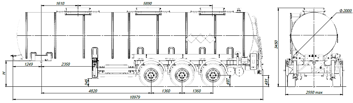 Полуприцеп для перевозки молока SF3025_1S_01 изготовлен из нержавеющей стали. Номинальная емкость составляет 25000 литров. Длина/Высота/Ширина соответственно 11х3,5х2,55 метров. Общая масса транспортного средства 31450 кг.
