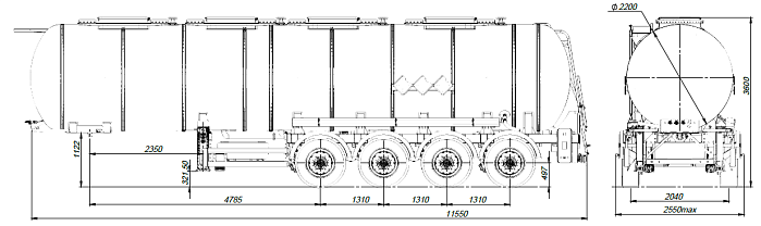 SF4030 - это полуприцеп-цистерна, предназначенная для перевозки и временного хранения пищевых жидкостей