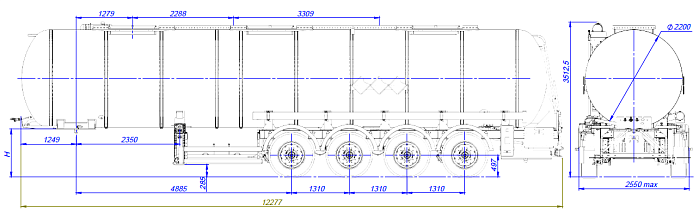 SF4032.1N_01, 32м3, 3 отсека, ССУ 1250 - это полуприцеп-цистерна, предназначенная для перевозки и временного хранения пищевых жидкостей