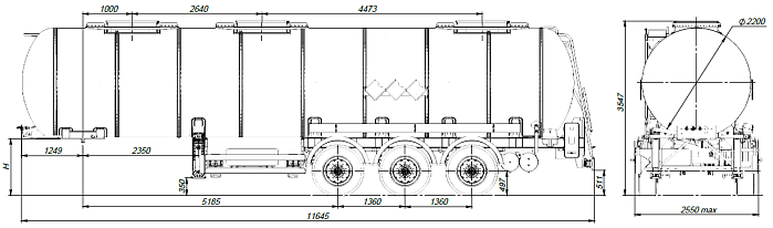 - Расстояние между осями, мм