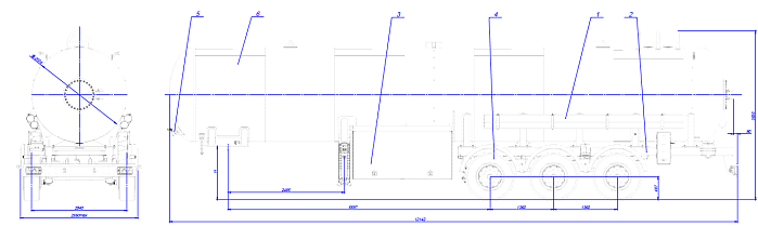 Газовоз 964884 ССУ 1250, 1 отсек_07 изготавливается в виде полуприцепа-цистерны, а также автоцистерны на шасси, предназначен для перевозки,заправки и временного хранения газа: пропана,бутана (СУГ). Объем цистерны изготавливаемой техники составляет 36100 л. Общая масса брутто 32 т. Грузоподъемность 18,7 т. Масса снаряжённого ТС 13300 кг.