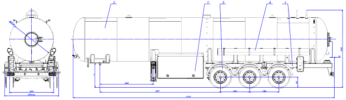 Газовоз 964884 ССУ 1250, 1 отсек_08 изготавливается в виде полуприцепа-цистерны, а также автоцистерны на шасси, предназначен для перевозки,заправки и временного хранения газа: пропана,бутана (СУГ). Объем цистерны изготавливаемой техники составляет 36100 л. Общая длина 12,3 м. Высота 4 м. Ширина 2,55 м. Общая масса 3200 кг. Нагрузка ССУ 9400 кг.