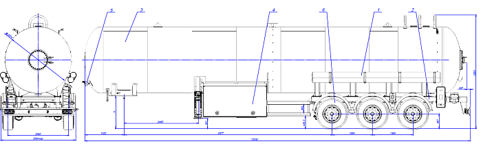 Газовоз 964885 ССУ 1150, 1 отсек_03 изготавливается в виде полуприцепа-цистерны, а также автоцистерны на шасси, предназначен для перевозки,заправки и временного хранения газа: пропана,бутана (СУГ). Объем цистерны изготавливаемой техники составляет 39525 литров. Общая масса брутто 46,5 кг. Грузоподъемность 20882 кг. Масса снаряжённого ТС 14300 кг.