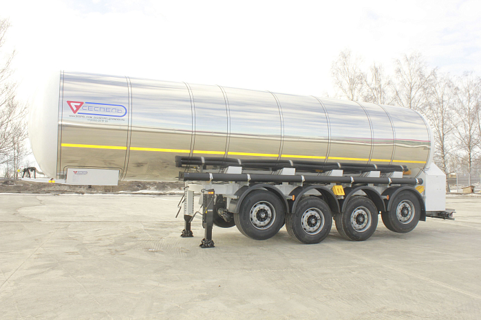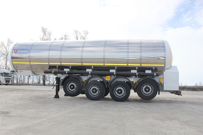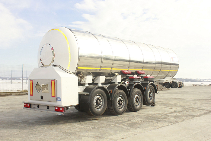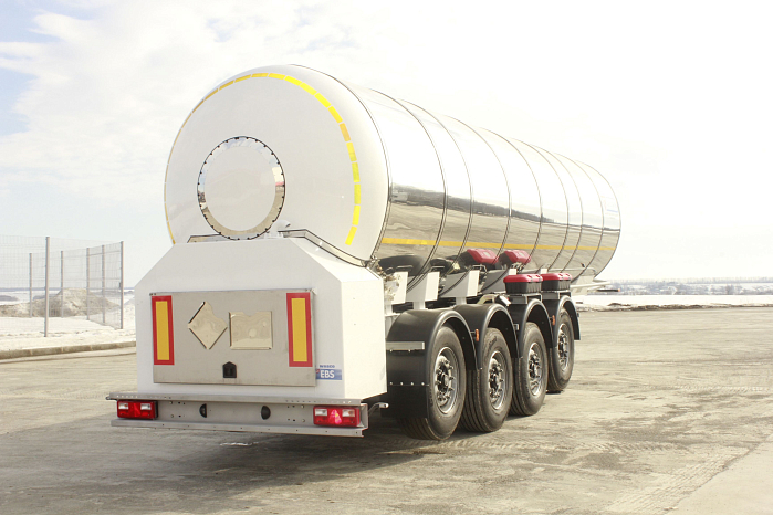 Сверхлегкий полуприцеп-цистерна SF4C26 для транспортировки УГЛЕРОДА ДИОКСИД ОХЛАЖДЕННЫЙ ЖИДКИЙ № ООН 2187 (UN2187) с изотермическим резервуаром пенопоулиретан с парозащитной пленкой перевозит на 30% больше груза по сравнению с 3х-осным полуприцепом.