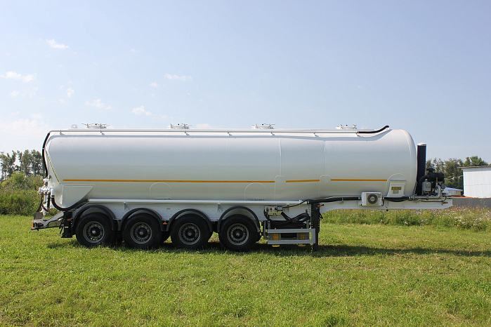 Двухпроводная тормозная система, оснащенная системой 2S/2M с функцией ABS. Полуприцеп оборудован индивидуальными крыльями из ПВХ. Цистерна подвергается специальной обработки с предварительной грунтовкой, обогащенной цинком и окрашиванием в один цвет высококачественной двухкомпонентной краской. Высота седельно-сцепного устройства от 1150 до 1350 мм.