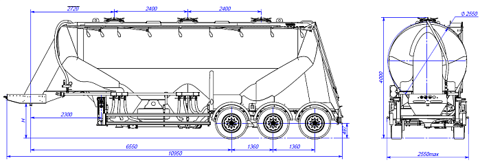 Муковоз SF3U39.2A_01, ССУ 1150, 2 отсека - это полуприцеп-цистерна, предназначенная для бестарной перевозки сыпучей пищевой продукции (зерновых культур, муки, отрубей, комбикорма, сахара, кормов, гранул и др.). Конструкция цистерны выполнена из алюминиевого сплава (Германия) в виде несущей емкости. Объем цистерны составляет 39000 м3. Муковоз SF3U39.2A_01 разделяется на 2 отсека. Транспортируется тягачом колесной формулой – 4х2 российского или иностранного производства. Количество изолированных отсеков – 1 (емкость может быть разделена внутренними перегородками на 5 (пять) герметичных отсека для перевозки различных сортов груза с индивидуальной выгрузкой. Общая длина 10,95 м. Высота 4 метра. Ширина 2,55 м. Колесная база 6550+1360+1360.
