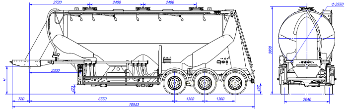Муковоз SF3U39.3A_03, ССУ 1350, 3 отсека - это полуприцеп-цистерна, предназначенная для бестарной перевозки сыпучей пищевой продукции (зерновых культур, муки, отрубей, комбикорма, сахара, кормов, гранул и др.). Конструкция цистерны выполнена из алюминиевого сплава (Германия) в виде несущей емкости. Объем цистерны составляет 39000 м3. Муковоз SF3U39.3A_03 разделяется на 3 отсека. Транспортируется тягачом колесной формулой – 4х2 российского или иностранного производства. Количество изолированных отсеков – 1 (емкость может быть разделена внутренними перегородками на 5 (пять) герметичных отсека для перевозки различных сортов груза с индивидуальной выгрузкой. Расстояние между осями 1360 мм. Общая масса брутто 3200 кг. Нагрузка ССУ 10500 кг. Нагрузка на оси 21500 кг.