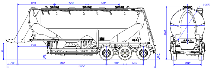 Муковоз SF3U39.3A_06, ССУ 1250, 3 отсека - это полуприцеп-цистерна, предназначенная для бестарной перевозки сыпучей пищевой продукции (зерновых культур, муки, отрубей, комбикорма, сахара, кормов, гранул и др.). Конструкция цистерны выполнена из алюминиевого сплава (Германия) в виде несущей емкости. Объем цистерны составляет 39000 м3. Муковоз SF3U39.3A_06 разделяется на 3 отсека. Транспортируется тягачом колесной формулой – 4х2 российского или иностранного производства. Количество изолированных отсеков – 1 (емкость может быть разделена внутренними перегородками на 5 (пять) герметичных отсека для перевозки различных сортов груза с индивидуальной выгрузкой. Грузоподъемность 24600 кг. Высота ССУ 1,25 метра. Масса снаряжённого ТС 5650 кг.