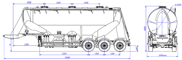 Муковоз SF3U39.3A_09, ССУ 1150, 3 отсека - это полуприцеп-цистерна, предназначенная для бестарной перевозки сыпучей пищевой продукции (зерновых культур, муки, отрубей, комбикорма, сахара, кормов, гранул и др.). Конструкция цистерны выполнена из алюминиевого сплава (Германия) в виде несущей емкости. Объем цистерны составляет 39000 м3. Муковоз SF3U39.3A_09 разделяется на 3 отсека. Транспортируется тягачом колесной формулой – 4х2 российского или иностранного производства. Количество изолированных отсеков – 1 (емкость может быть разделена внутренними перегородками на 5 (пять) герметичных отсека для перевозки различных сортов груза с индивидуальной выгрузкой. Общая длина 10,95 м. Высота 4 метра. Ширина 2,55 м. Колесная база 6550+1360+1360.