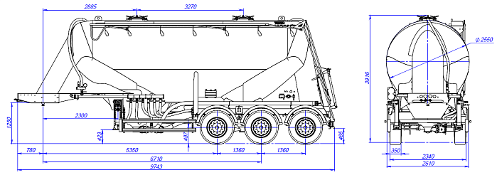 Полуприцеп-цистерны SF3U32 являются весьма рентабельным приобретением для предприятий пищевой промышленности и компаний, занимающихся грузоперевозками. Номинальная вместимость цистерны составляет 32,5 куб. м. Габариты техники – 9,74х45х2,55 м. Седельно-сцепное устройство имеет высоту 1,25 м. Общая масса достигает 39,8 тонны. Грузоподъемность 35000 кг.