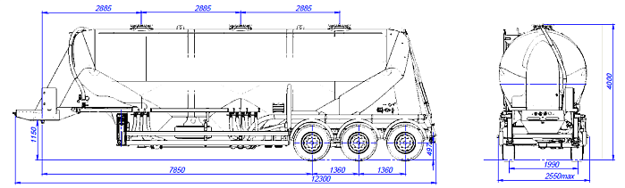 Муковоз SF3U48_1A_04 ССУ 1350, 1 отсек - это полуприцеп-цистерна, предназначенная для бестарной перевозки сыпучей пищевой продукции (зерновых культур, муки, отрубей, комбикорма, сахара, кормов, гранул и др.). Конструкция цистерны выполнена из алюминиевого сплава (Германия) в виде несущей емкости. Объем цистерны составляет 45,5 м3. Муковоз SF3U48_1A_04 разделяется на 1 отсек. Транспортируется тягачом колесной формулой – 4х2 российского или иностранного производства. Количество изолированных отсеков – 1 (емкость может быть разделена внутренними перегородками на 5 (пять) герметичных отсека для перевозки различных сортов груза с индивидуальной выгрузкой. Разгрузочный узел расположен сзади. Есть монтажная площадка под компрессор. Масса снаряжённого ТС 6000 кг.