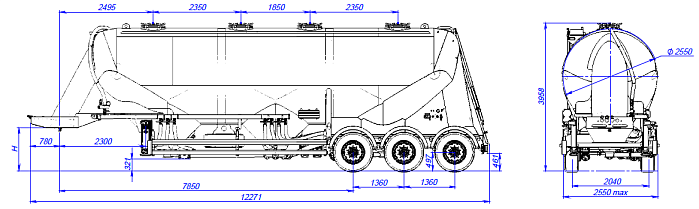 Муковоз SF3U48_1A_06 ССУ 1150, 1 отсек - это полуприцеп-цистерна, предназначенная для бестарной перевозки сыпучей пищевой продукции (зерновых культур, муки, отрубей, комбикорма, сахара, кормов, гранул и др.). Конструкция цистерны выполнена из алюминиевого сплава (Германия) в виде несущей емкости. Объем цистерны составляет 45,5 м3. Муковоз SF3U48_1A_06 разделяется на 1 отсек. Транспортируется тягачом колесной формулой – 4х2 российского или иностранного производства. Количество изолированных отсеков – 1 (емкость может быть разделена внутренними перегородками на 5 (пять) герметичных отсека для перевозки различных сортов груза с индивидуальной выгрузкой. Разгрузочный узел расположен сзади. Есть монтажная площадка под компрессор. Масса снаряжённого ТС 5850 кг.