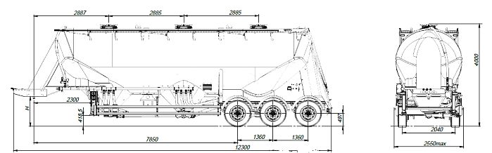 Муковоз SF3U48_1A_09 ССУ 1150, 1 отсек - это полуприцеп-цистерна, предназначенная для бестарной перевозки сыпучей пищевой продукции (зерновых культур, муки, отрубей, комбикорма, сахара, кормов, гранул и др.). Конструкция цистерны выполнена из алюминиевого сплава (Германия) в виде несущей емкости. Объем цистерны составляет 45,5 м3. Муковоз SF3U48_1A_09 разделяется на 1 отсек. Транспортируется тягачом колесной формулой – 4х2 российского или иностранного производства. Количество изолированных отсеков – 1 (емкость может быть разделена внутренними перегородками на 5 (пять) герметичных отсека для перевозки различных сортов груза с индивидуальной выгрузкой. Разгрузочный узел расположен слева. Есть монтажная площадка под компрессор. Масса снаряжённого ТС 6000 кг.