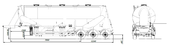 Муковоз SF3U48_3A_23 ССУ 1250, 3 отсека - это полуприцеп-цистерна, предназначенная для бестарной перевозки сыпучей пищевой продукции (зерновых культур, муки, отрубей, комбикорма, сахара, кормов, гранул и др.). Конструкция цистерны выполнена из алюминиевого сплава (Германия) в виде несущей емкости. Объем цистерны составляет 45,5 м3. Муковоз SF3U48_3A_23 разделяется на 3 отсека. Транспортируется тягачом колесной формулой – 4х2 российского или иностранного производства. Количество изолированных отсеков – 1 (емкость может быть разделена внутренними перегородками на 5 (пять) герметичных отсека для перевозки различных сортов груза с индивидуальной выгрузкой. Расстояние между осями 1360 мм. Колеса 385/65R22,5; 6+1. Общая масса 32600 кг. Нагрузка ССУ 10100 кг.