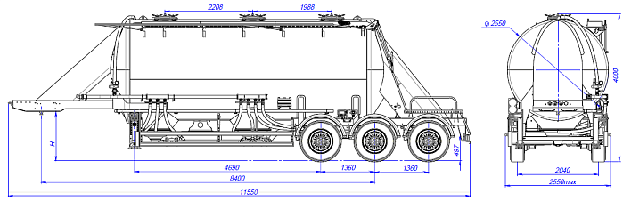 Трехосный, односкатный полуприцеп: муковоз SF3U31.1S_06, 31 м3, ССУ от 1100 до 1200 из низколегированной стали