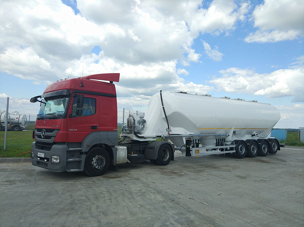 4-х осный комбикормовоз SF4U55 - это полуприцеп-цистерна, предназначенная для бестарной перевозки сыпучей пищевой продукции (зерновых культур, муки, отрубей, комбикорма, сахара, кормов, гранул и др.). Конструкция цистерны выполнена из алюминиевого сплава (Германия) в виде несущей емкости. Объем цистерны составляет 55 м3. Транспортируется SF4U55 тягачом колесной формулой – 4х2 российского или иностранного производства. Количество изолированных отсеков – 1. Колесная база 7740+1310+1310 мм. Общая масса 33,6 тонн.