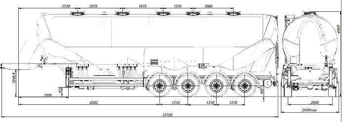 Комбикормовоз SF4U55_1А_01 - это полуприцеп-цистерна, предназначенная для бестарной перевозки сыпучей пищевой продукции (зерновых культур, муки, отрубей, комбикорма, сахара, кормов, гранул и др.)