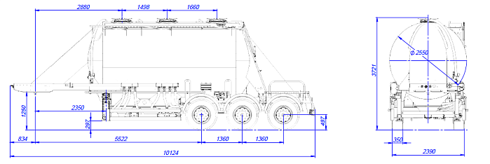 Цистерна подвергается специальной обработки с предварительной грунтовкой, обогащенной цинком и окрашиванием в один цвет высококачественной двухкомпонентной краской. Высота седельно-сцепного устройства 1150 мм. Дополнительно может быть установлено разнообразное оборудование, такое как насос, счетчик, узел выдачи топлива, система рекуперации паров, система нижнего налива и т.д. Грузоподъемность 24400 кг. Масса снаряжённого ТС 7300 кг. Общая масса брутто 34900 кг. Разгрузочный узел расположен слева. Нагрузка на оси 23200 кг. Нагрузка ССУ 11700 кг.