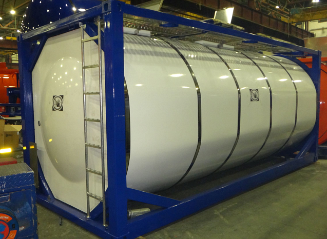 Танк-контейнер транспортирует подобные грузы авто-, железнодорожным или морским способом. Данное средство для доставки определенного вида багажа представляет собой морской контейнер T14, который оснащен каркасом и цистерной, оборудованный сливной арматурой и приспособлениями для разгрузки товара под силой тяжести и давления. Объем цистерны составляет 25,1 м3. Грузоподъемность 25,1 м3. Масса снаряжённого ТС 3600 кг.