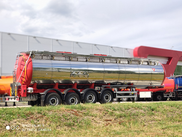 SF4932 - это полуприцеп-цистерна, предназначенная для перевозки химических веществ относящихся к 9 классу - прочие опасные вещества. Объем цистерны составляет 32 м3. Транспортируется тягачом колесной формулой – 4х2 российского или иностранного производства. Один изолированный отсек.