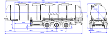 Полуприцеп 96487T имеет следующие основные характеристики: номинальная емкость 28000 литров, габариты техники составляют 11х3,6х2,5 м., показатель грузоподъемности – 24 тонн, а общая масса 32000 кг. Возможно разделение от 2 до 4 отсеков.